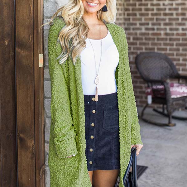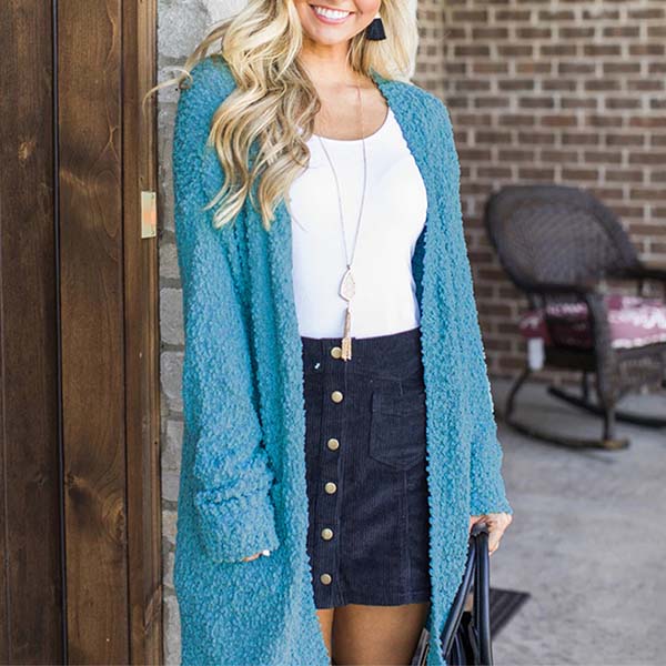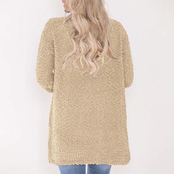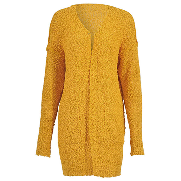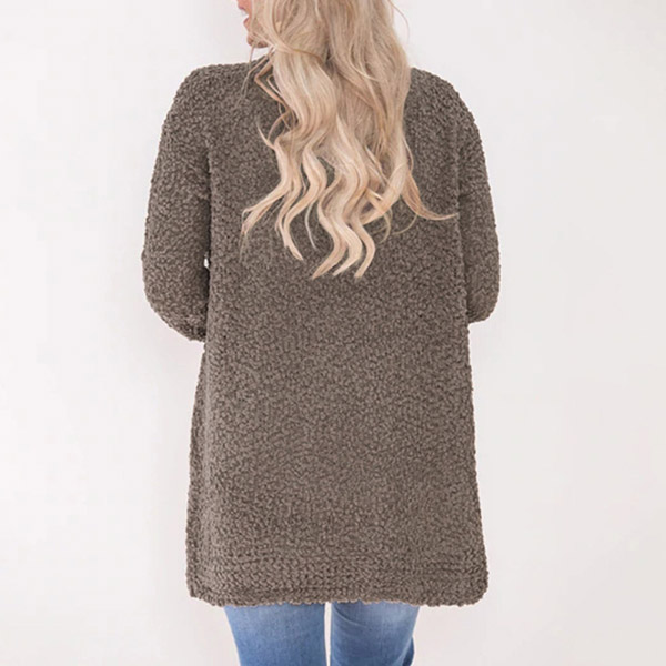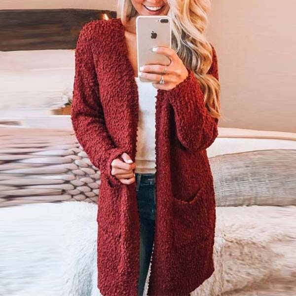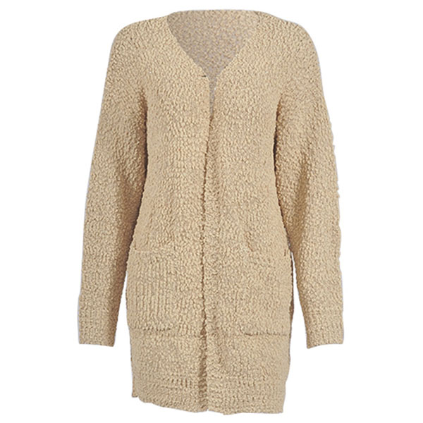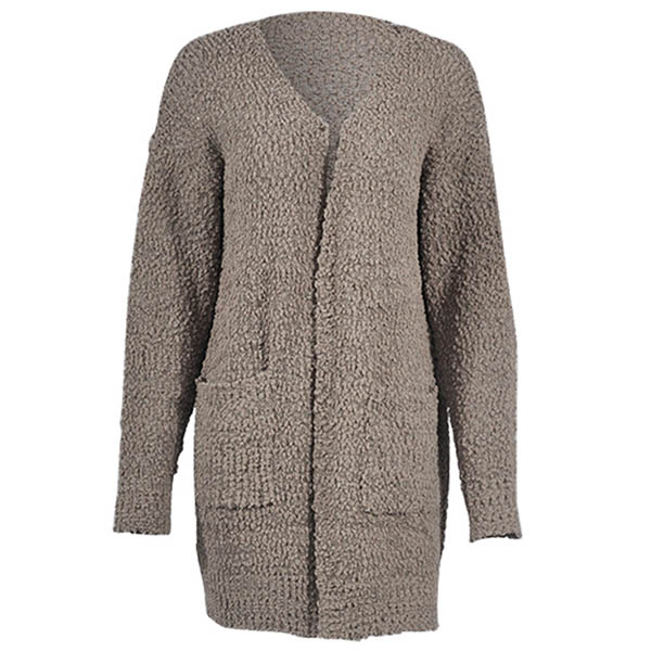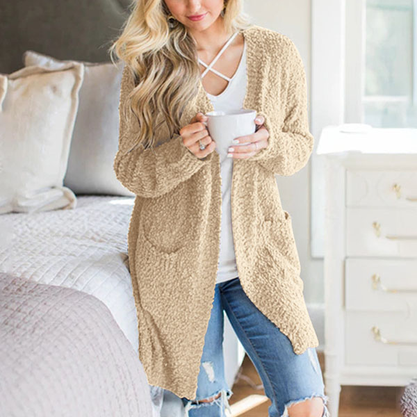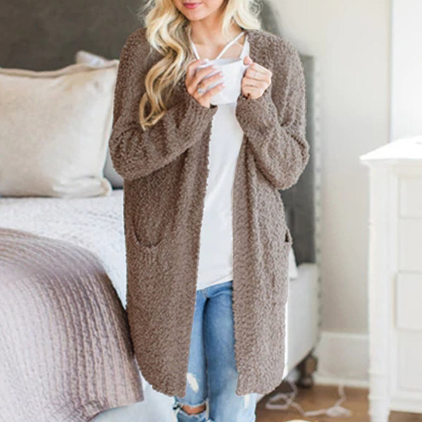 Fashion Solid Color Long Sleeve Front-pocket Knit Cardigan