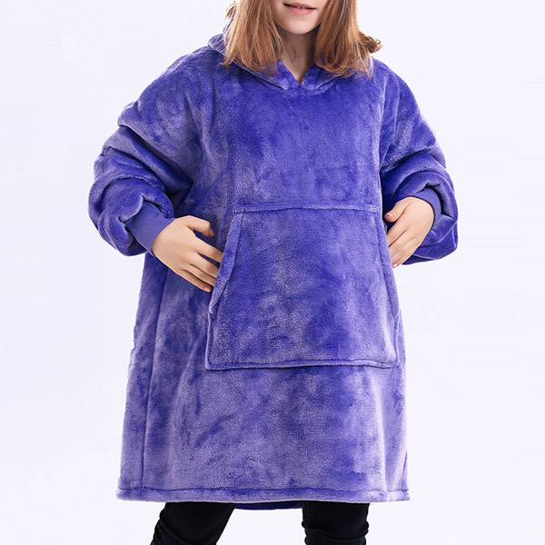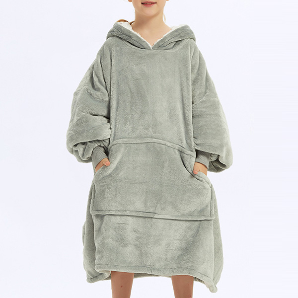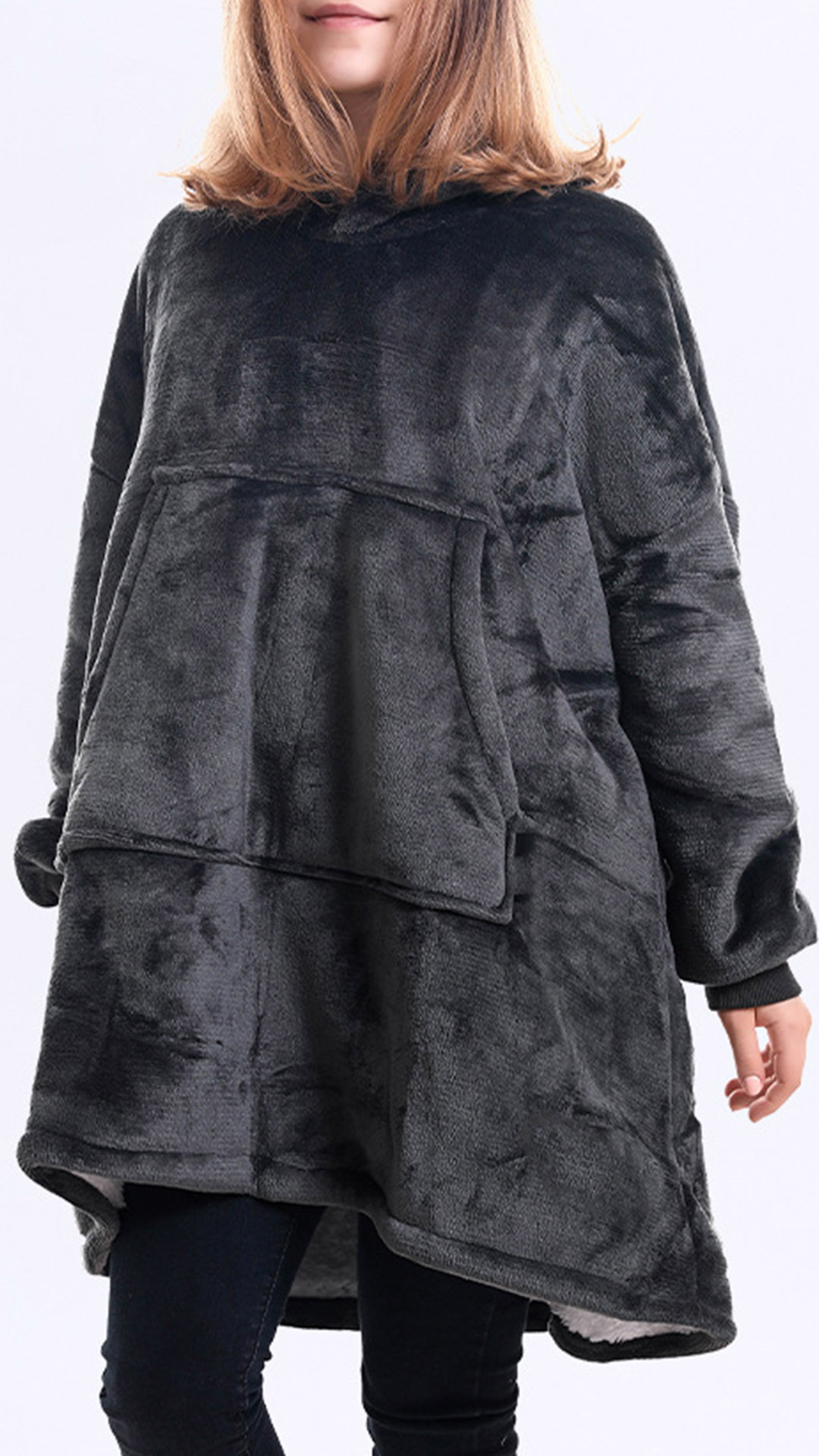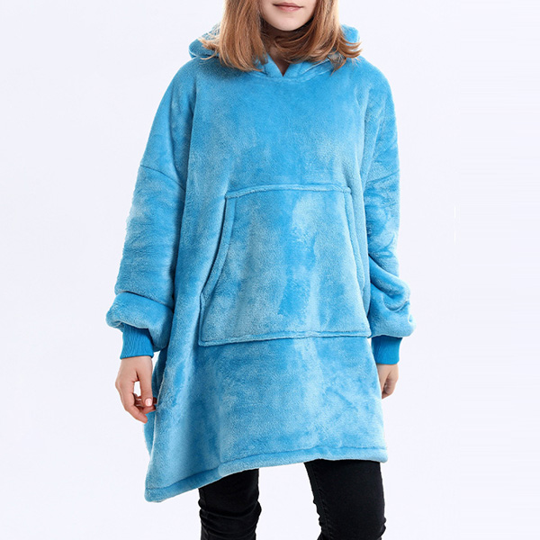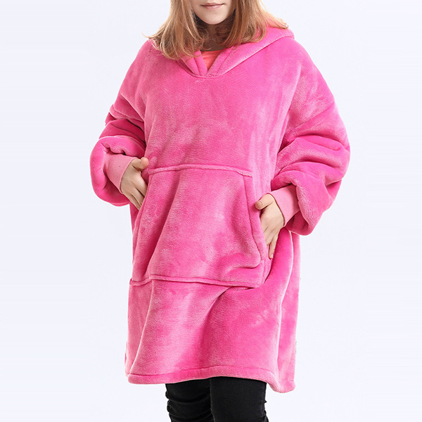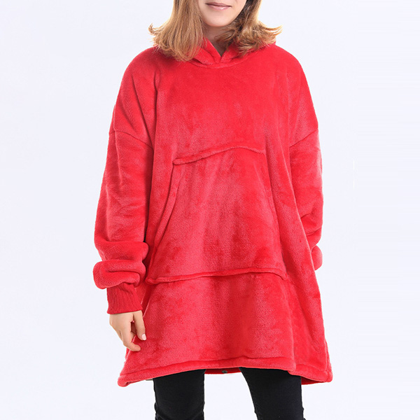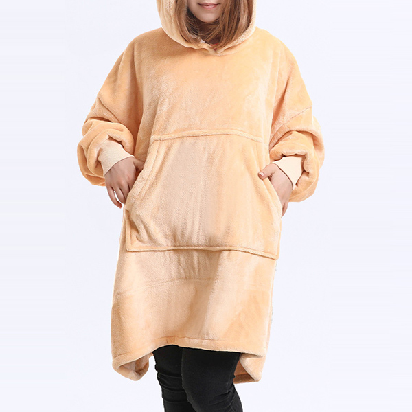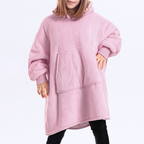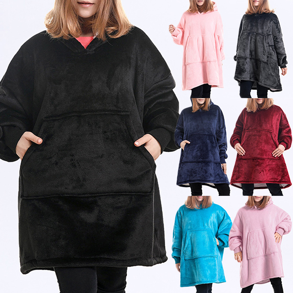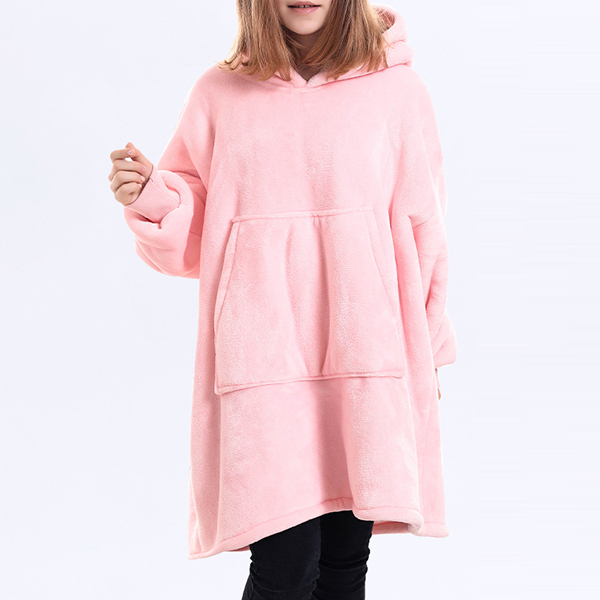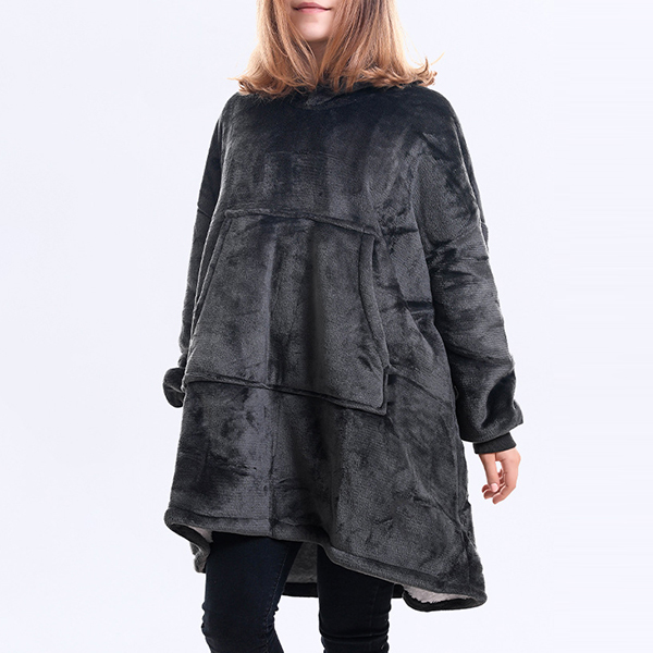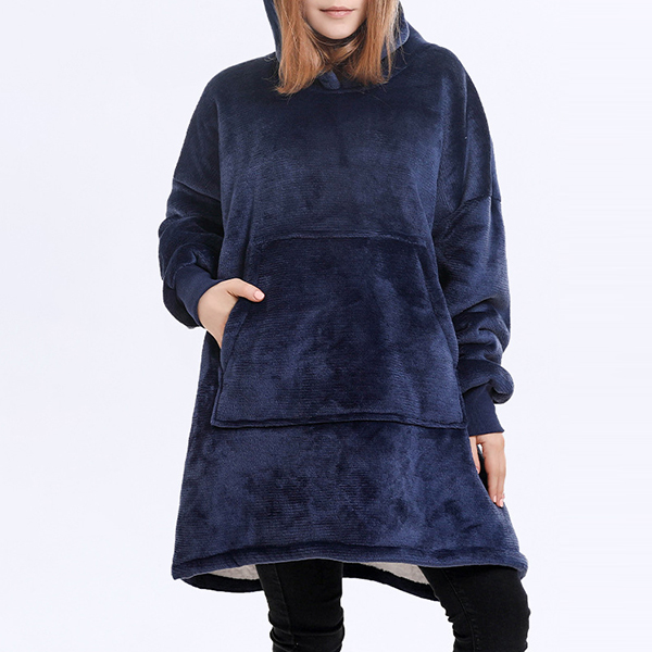 Fashion Solid Color Long Sleeve Front-pocket Lamb Fleece Spliced Flannel Long Huggle Hoodie Oversized Wearable Hoodie TV Blanket