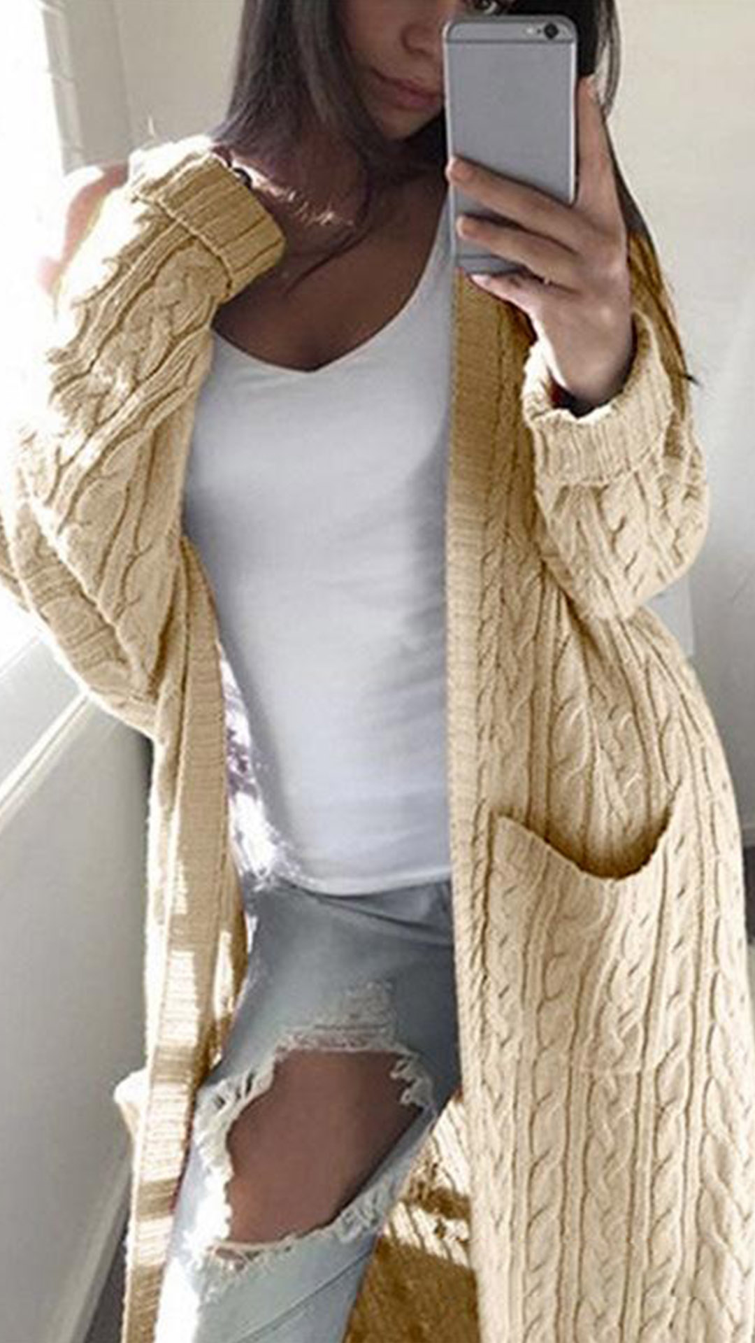 When the days get a little cold,this knit cardigan can be your perfect choice. Solid color style,designed with long sleeve,front-pocket and a loose silhouette,this cardigan not only can keep the comfy and warmth,but also can maintain your style and personality.