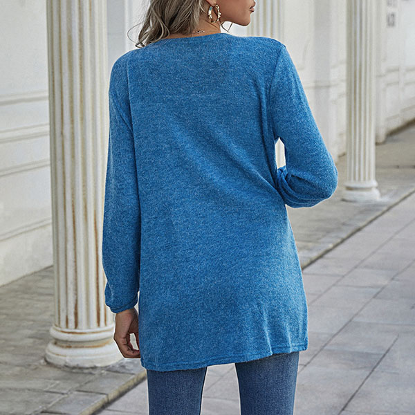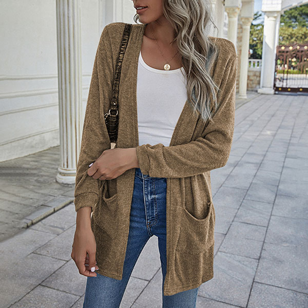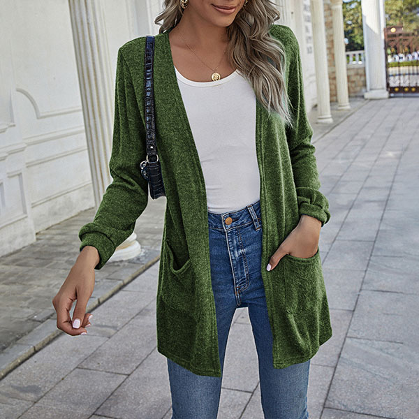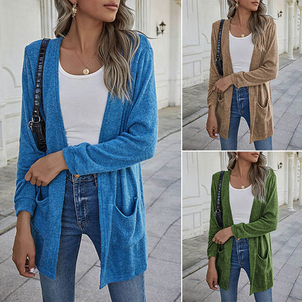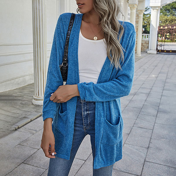 Fashion Solid Color Long Sleeve Front-pocket Thin Knit Cardigan