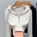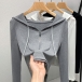 Fashion Solid Color Long Sleeve Half-zipper Drawstring Hooded Plush Lined Shirt