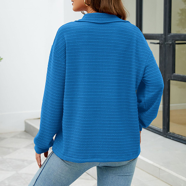 Fashion Solid Color Long Sleeve Half-zipper Lapel Pullover Shirt