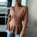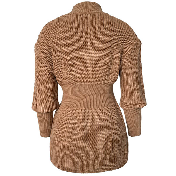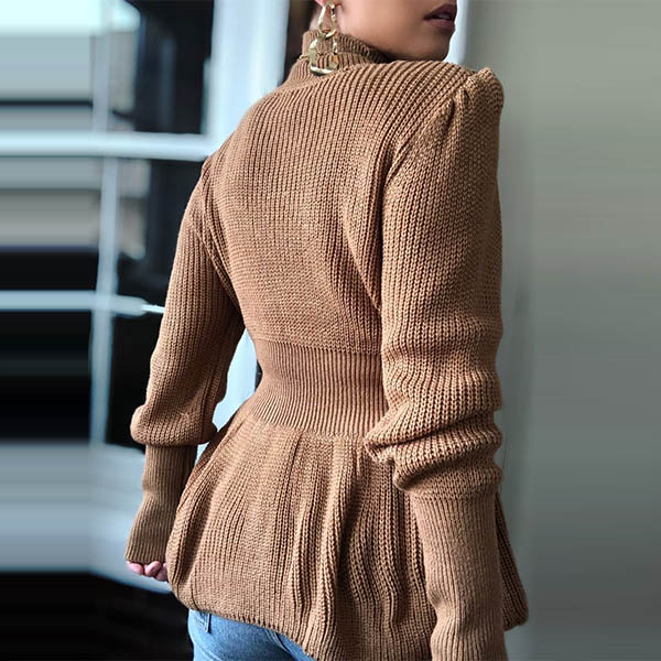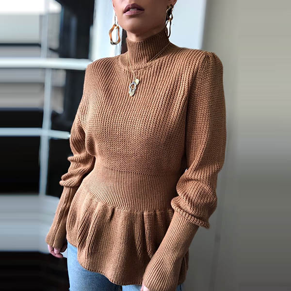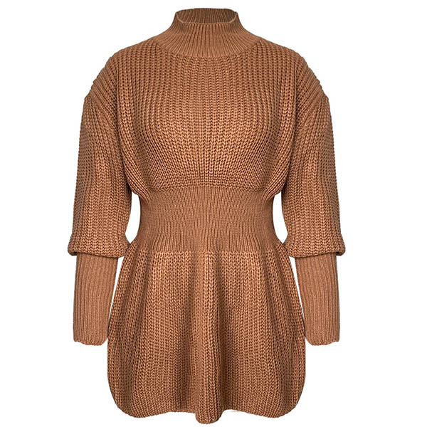 This knit top is perfect fit for you when the weather gets drop. It boasts a solid color,the high collar and soft knitted fabric can ensure you a warm and comfortable day,and the unique waist design will further enhance its charm. Try to add a sweater necklace to enrich your overall dress up.