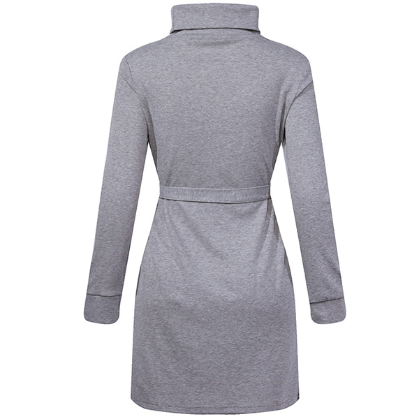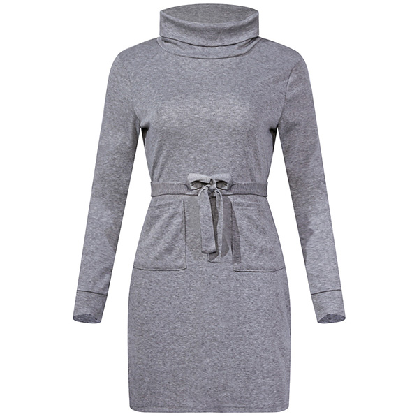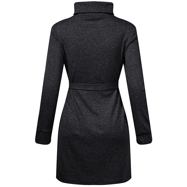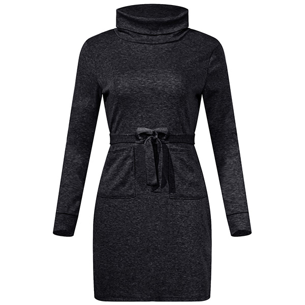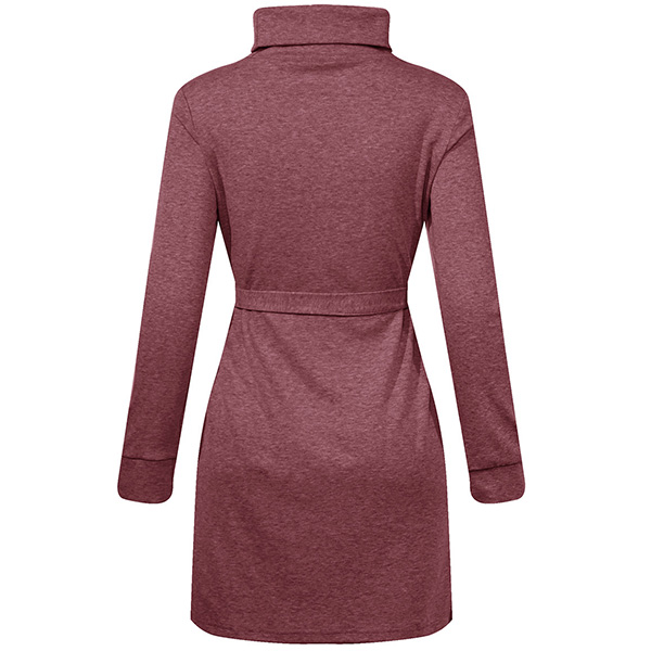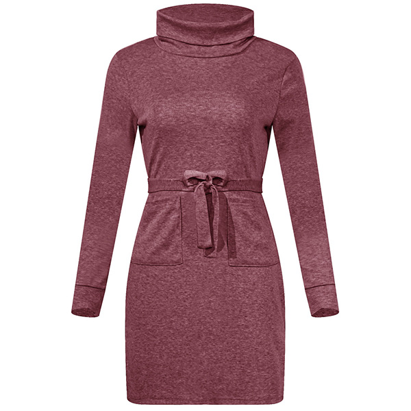 Your wardrobe will feel new and refreshing with this dress! Solid color style,finished with long sleeve and high collar design,this dress can keep you feeling warm and comfy. Meanwhile,the fit silhouette and waist strap design can better highlight your slender figure. Try to match it with your overcoat and over-the-knee boots in these winter days.