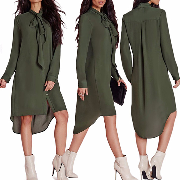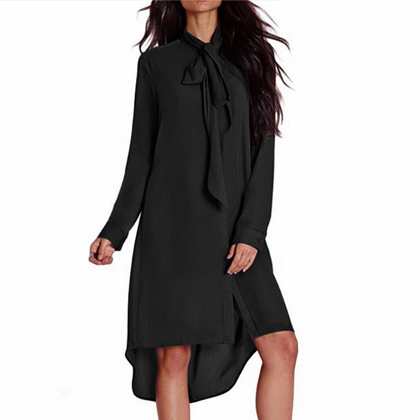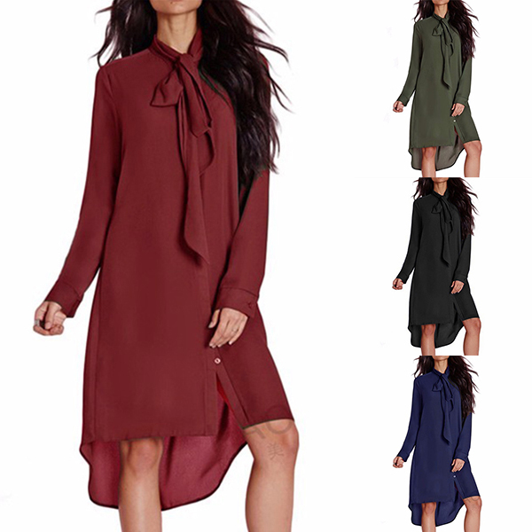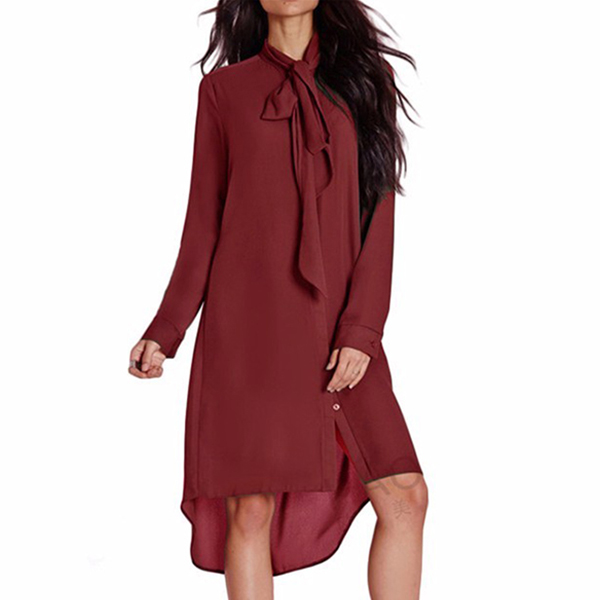 Fashion Solid Color Long Sleeve High-low Hem Chiffon Dress