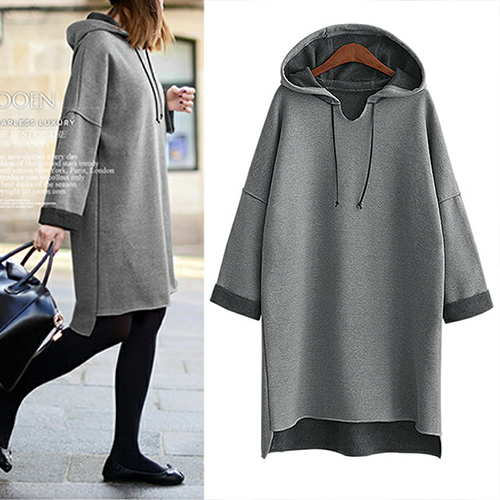 can ensure you an all-day comfort. Solid color style,outfitted with a high-low hem and hooded