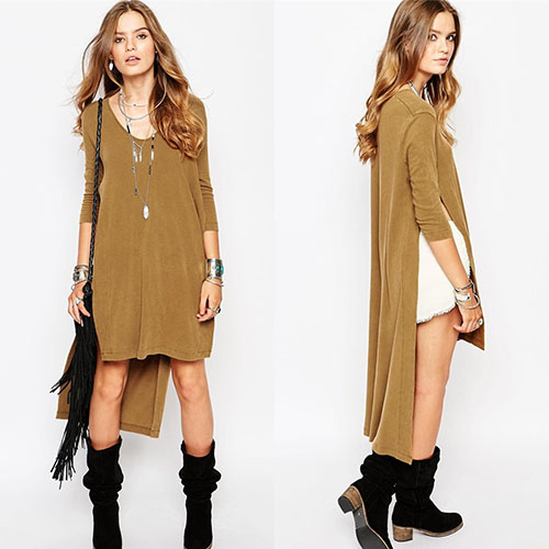 out? Then you can slip into this knitted tops! Features solid color,with long sleeve,