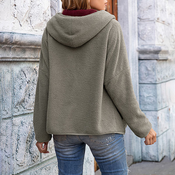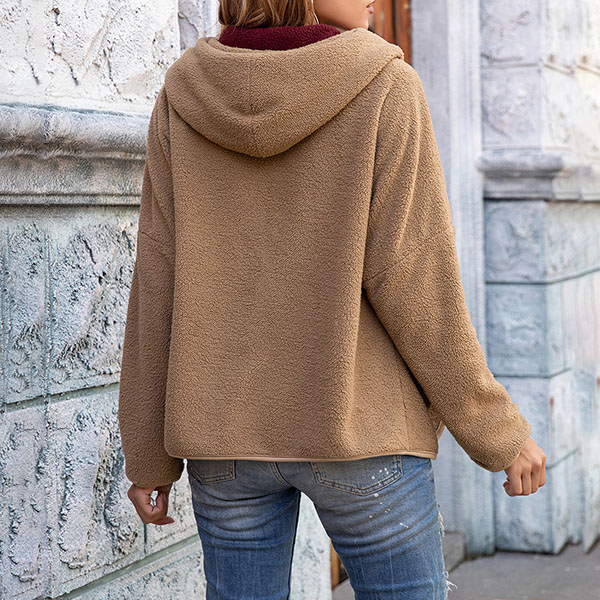 Fashion Solid Color Long Sleeve Hooded Coat