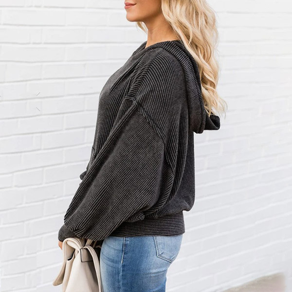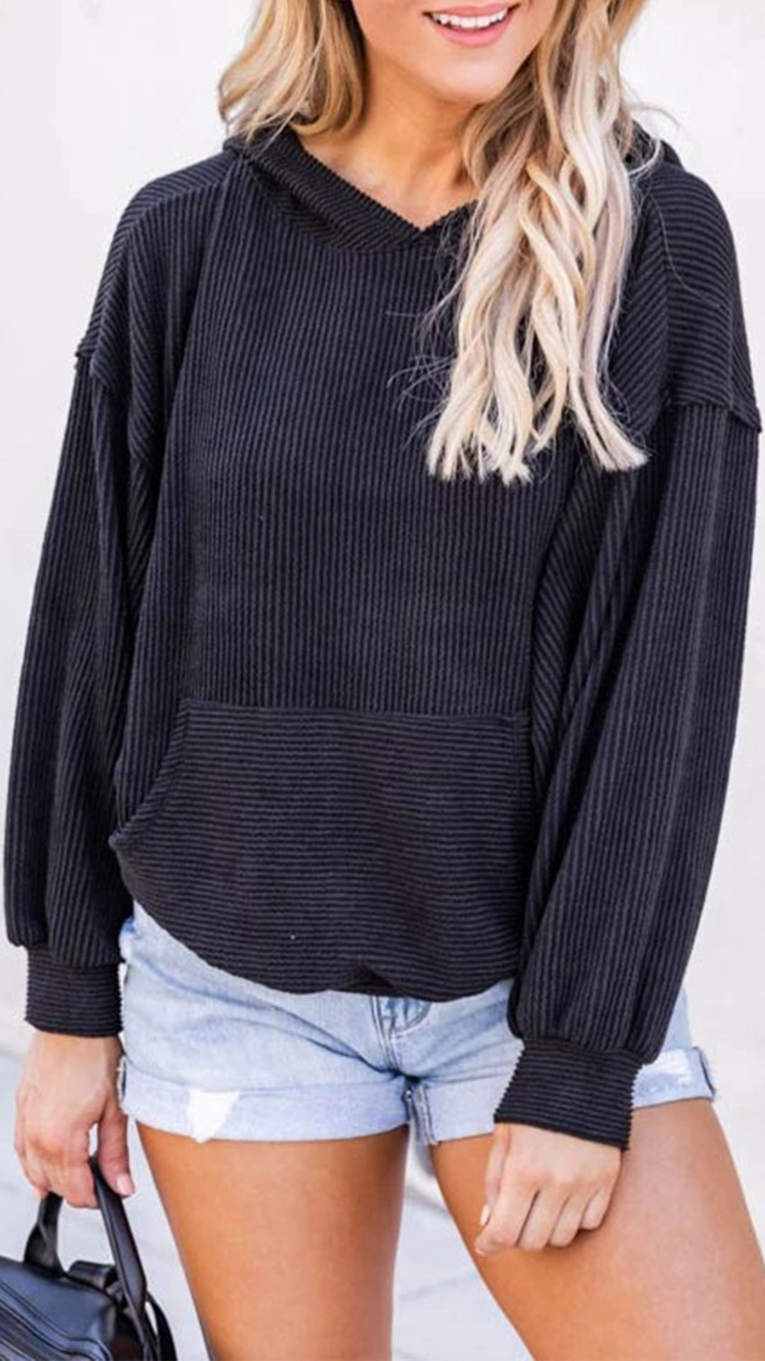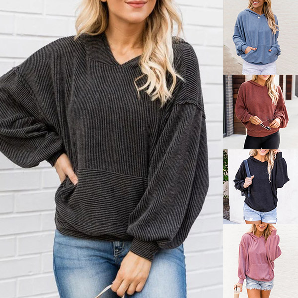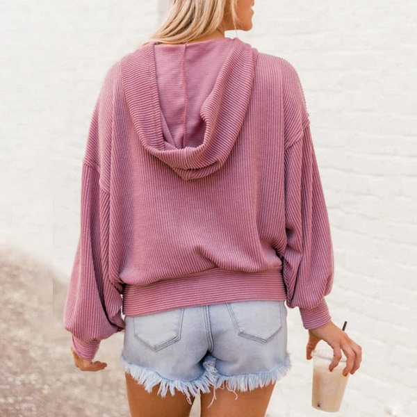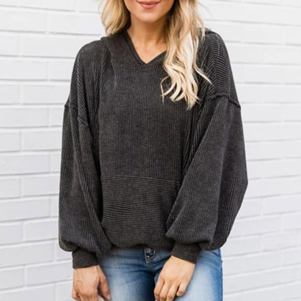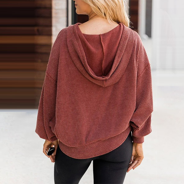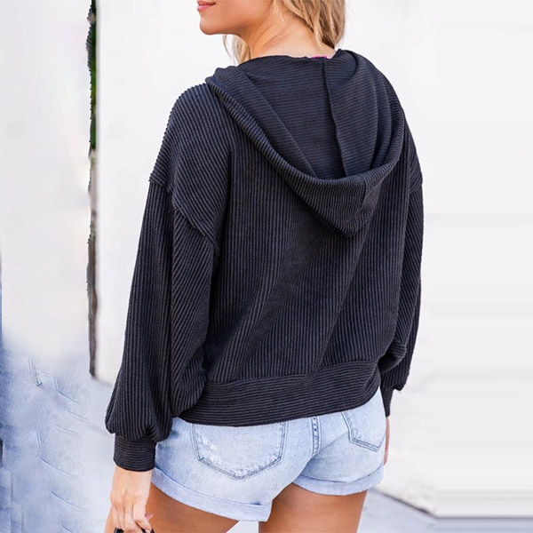 Fashion Solid Color Long Sleeve Hooded Corduroy Loose Sweatshirt