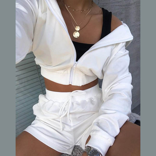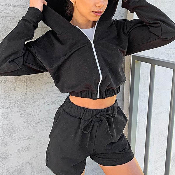 If you wanna a laid-back,relaxed yet sexy daily style,then you can just have a try this two-piece set. Solid color style,including a long sleeve hooded crop top and a high waist shorts,this two-piece set can give you an utmost comfort with its soft and breathable fabric. You can just exude your style and personality through this two-piece set.