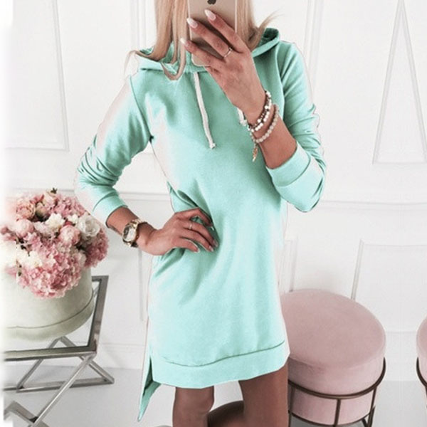 Fashion Solid Color Long Sleeve Hooded High-low Hem Sweatshirt Dress