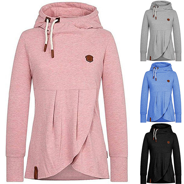 For your autumn days,this cozy yet stylish top would be your wise choice. Solid color style,finished with long sleeve,hooded silhouette and an irregular hem design,this piece can maintain the comfy while it offers you a casual,relaxed autumn look.