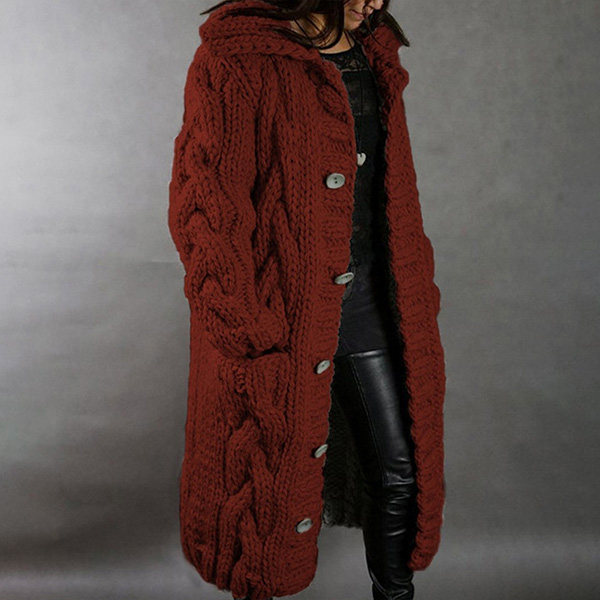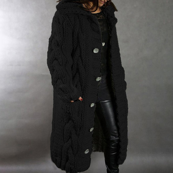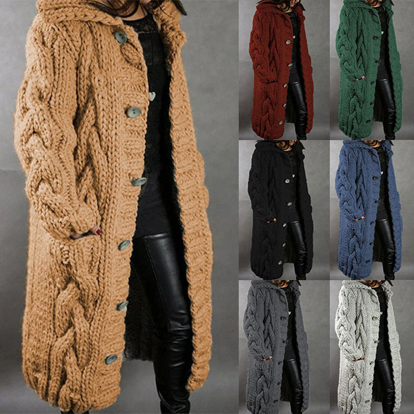 You have no need to worry about what to wear when the weather gets drop. Solid color style,finished with long sleeve,hooded silhouette and front-button details,this knit cardigan can keep you warm as well as offer a stylish daily look.