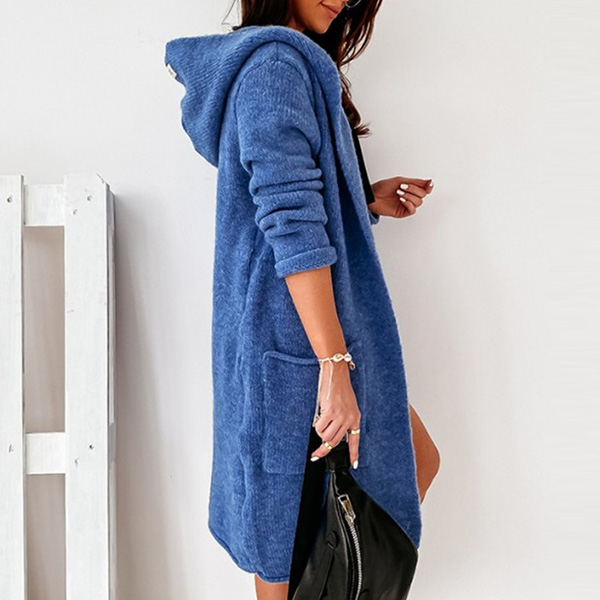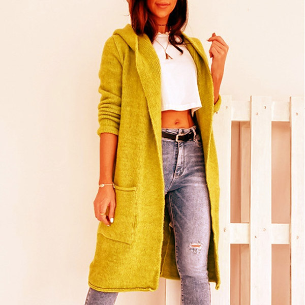 Fashion Solid Color Long Sleeve Hooded Knit Cardigan