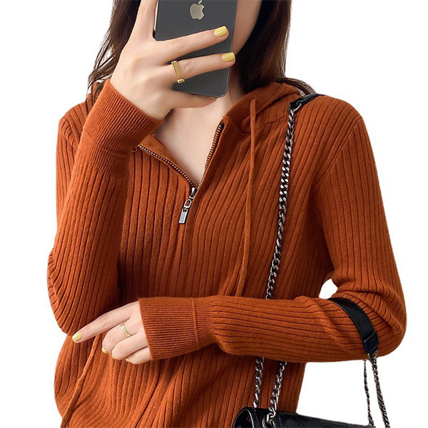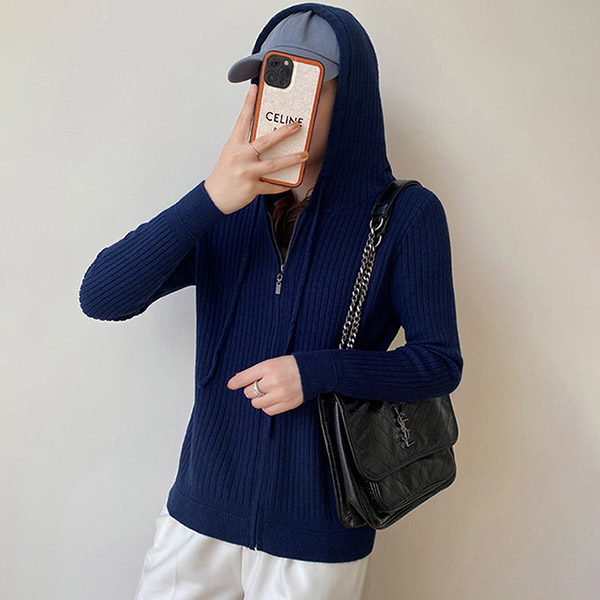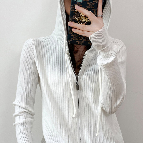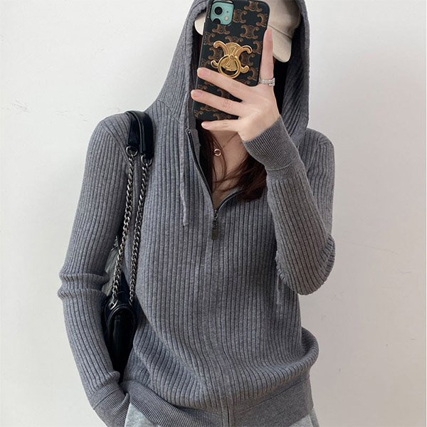 For your autumn days,this knit top can easily strike your mind. Solid color tone design makes it look so simple and generous. Finished with long sleeve,hooded silhouette and front-zipper closure,this piece not only can keep you warm,but also can keep you warm,but also can maintain a stylish daily style by teaming with your favourite pants.