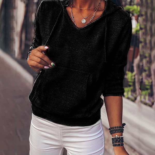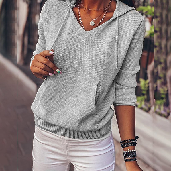 Greet the arrival of the autumn season with this knit top. Solid color tone design makes it look simple yet stylish. Finished with long sleeve and hooded silhouette,this wonderful piece not only can keep the comfy and warmth,but also can offer you different matching styles.