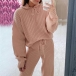 Fashion Solid Color Long Sleeve Hooded Knit Top + Pants Two-piece Set