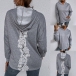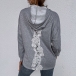 At your first sight,you may not find its charm. So we suggest you a second glance. The lace spliced details at the back side will enrich the design style as well as boost its entire appeal. Finished with long sleeve,hooded silhouette and front-pocket,this sweatshirt is a perfect addition for a laid-back but fashionable daily look.