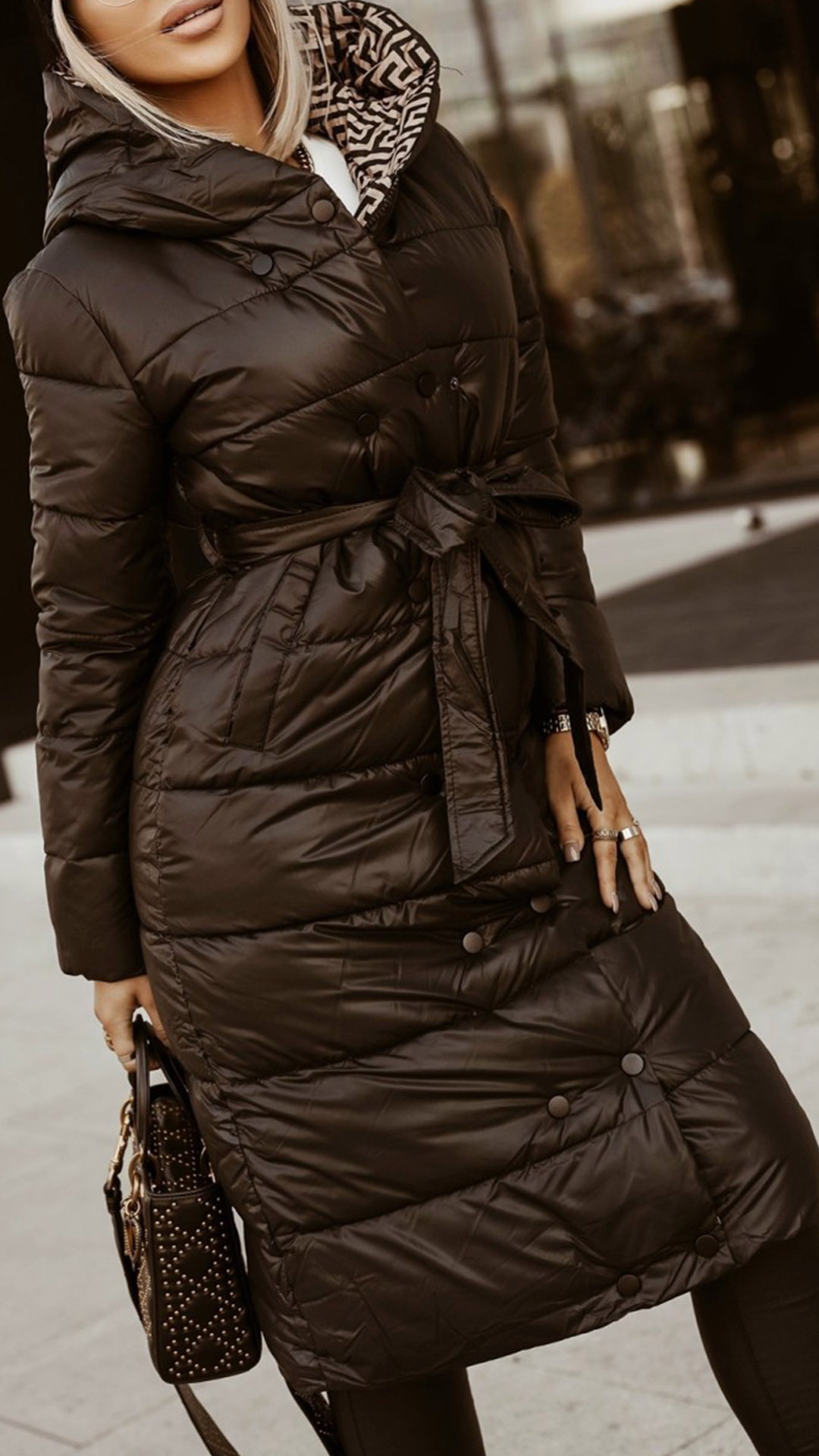As for the chilly winter days,this warm coat would be your wardrobe staple. Solid color tone and printed details an the inside make it look more attractive. Finished with hooded silhouette and long-style design,which can ensure you a comfortable day. Comes with a waist strap design,which will enrich the design style as well as showcase your figure.