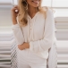 Fashion Solid Color Long Sleeve Hooded Loose Knit Sweatshirt Top