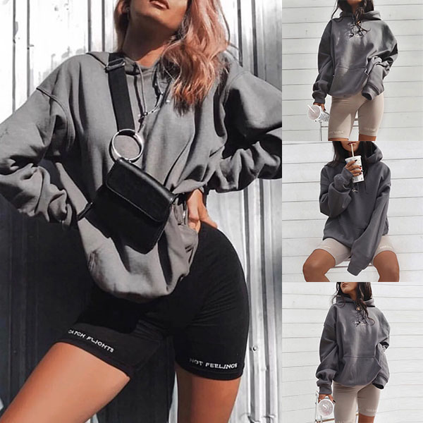 Wanna a boyfriend style street look? Then we suggest you having a try this sweatshirt! Solid color style,finished with long sleeve,hooded and a loose silhouette,this piece can maintain you a casual,relaxed yet stylish style.