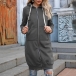 Fashion Solid Color Long Sleeve Hooded Mid Length Sweatshirt Coat