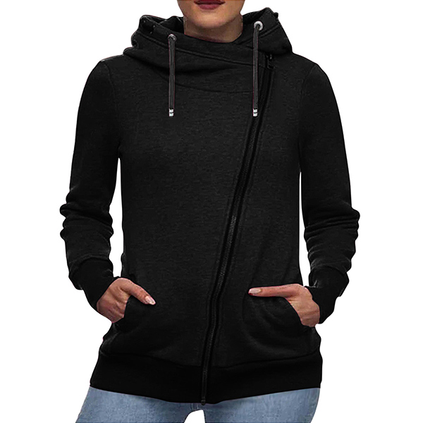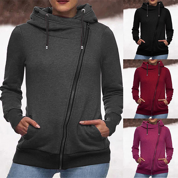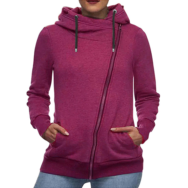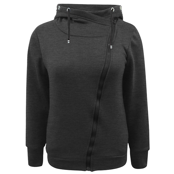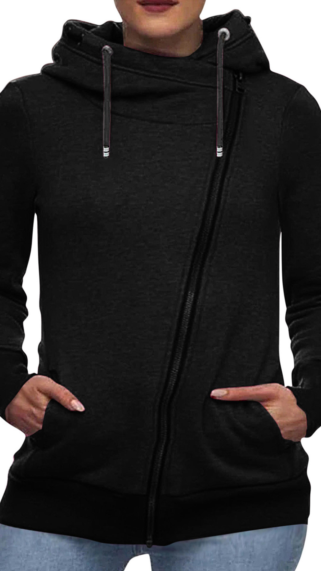 Fashion Solid Color Long Sleeve Hooded Oblique Zipper Sweatshirt