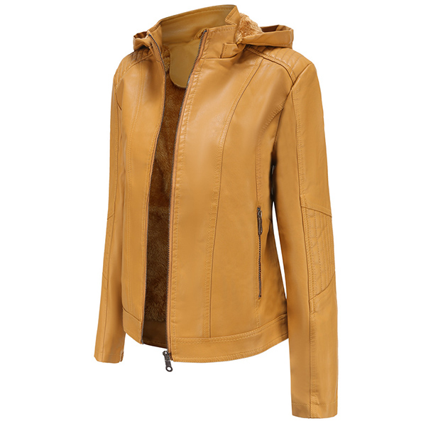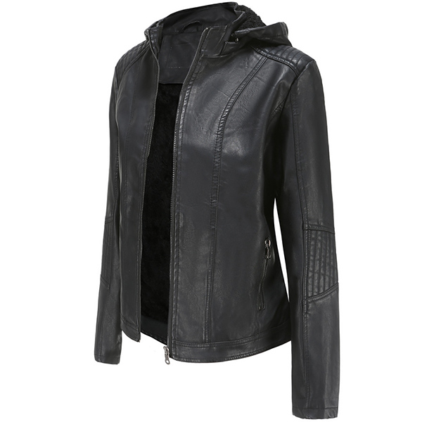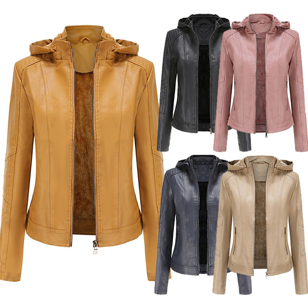 This PU leather coat is worth to be your wardrobe staple in these cold days. Solid color style,the hooded silhouette and plush lining design can keep you warm and comfy. Finished with long sleeve and front zipper closure,this classic yet stylish piece can offer you a cool and fashionable look by teaming with your tight pants and martin boots.