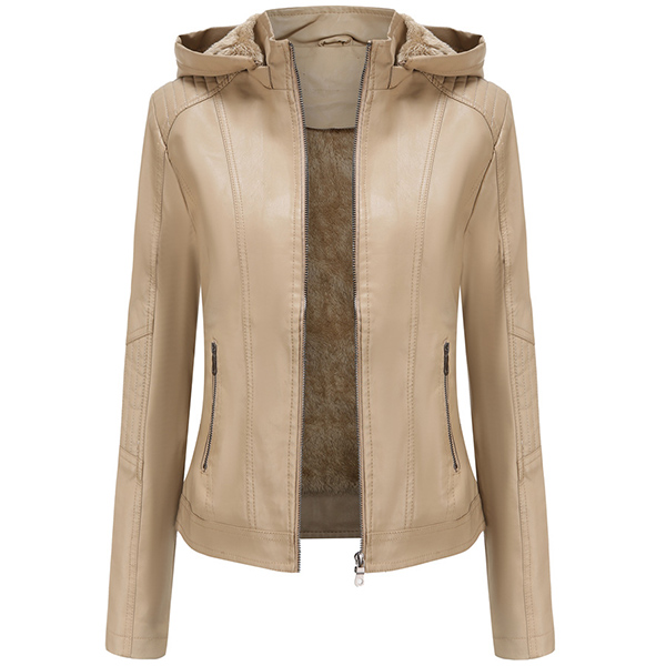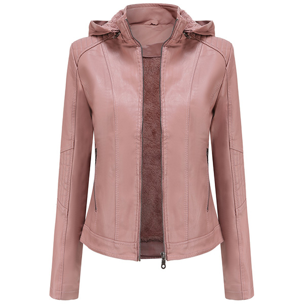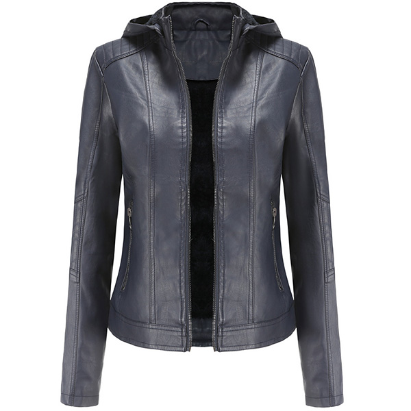 Fashion Solid Color Long Sleeve Hooded OU Leather Coat
