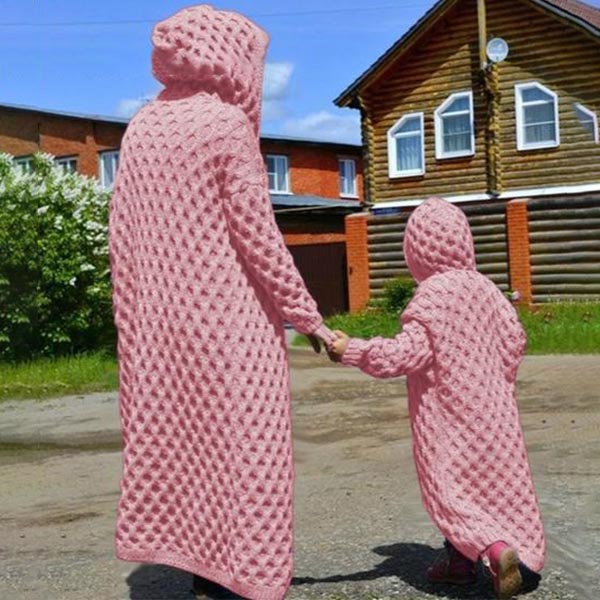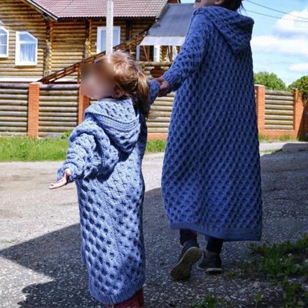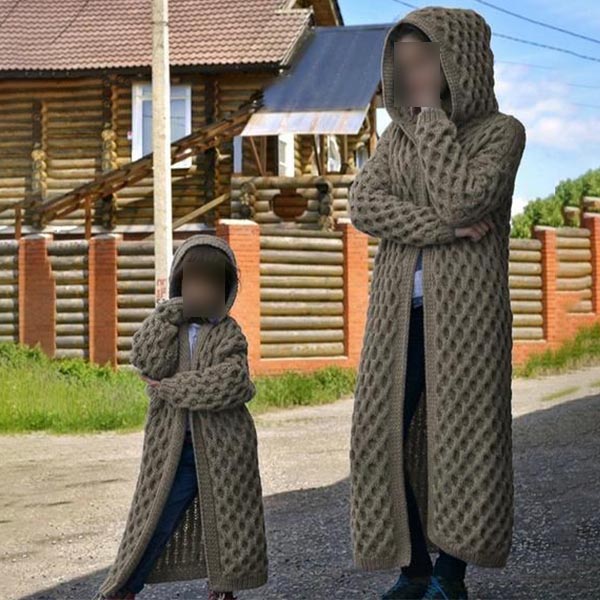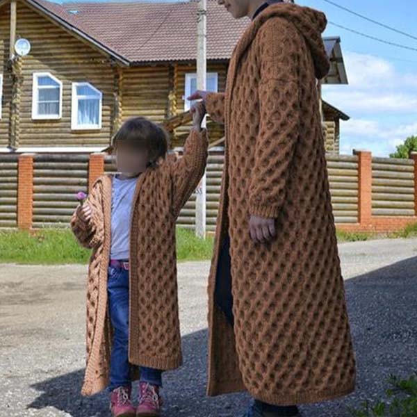 For your daily out with your daughter,you can choose this parent-child knit cardigan to draw more attention. Solid color style,finished with long sleeve,hooded silhouette and long-style design,this piece can offer you the comfy and warmth as well as give you a stylish and charming daily look. A perfect gift for your daughter and yourself.