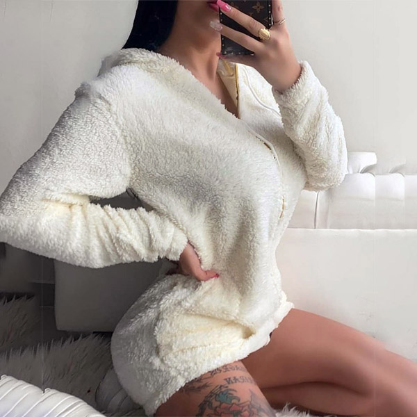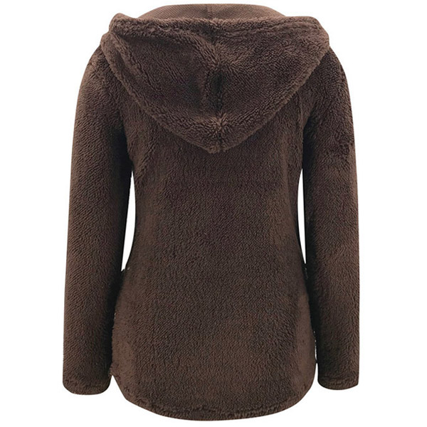 Greet the cold days with this plush coat. Solid color tone design makes it look simple,stylish yet generous,while the plush fabric and hooded silhouette design can ensure you a warm and comfortable day. So why not invite this coat to give your wardrobe a seasonal update?