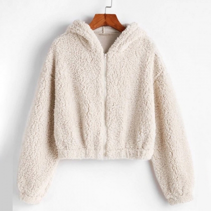 Fashion Solid Color Long Sleeve Hooded Plush Coat