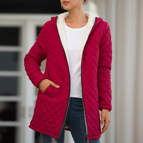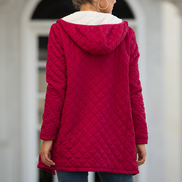 Fashion Solid Color Long Sleeve Hooded Plush Lining Coat