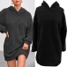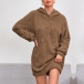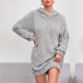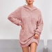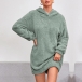 Fashion Solid Color Long Sleeve Hooded Plush Sweatshirt Dress