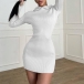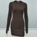 Fashion Solid Color Long Sleeve Hooded Ribbed Bodycon Dress