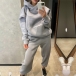 Fashion Solid Color Long Sleeve Hooded Ripped Sweatshirt + Pants Two-piece Set