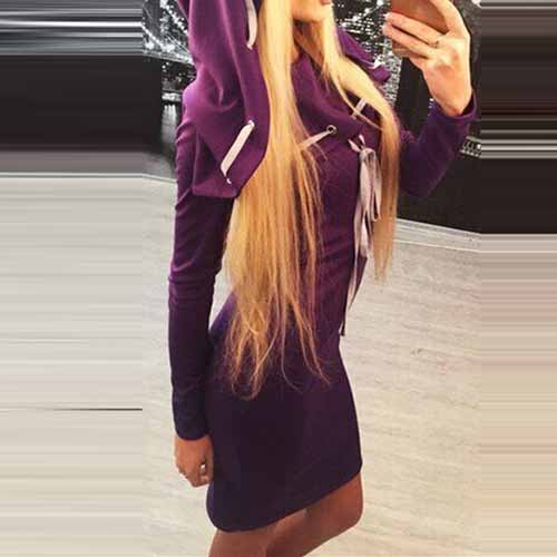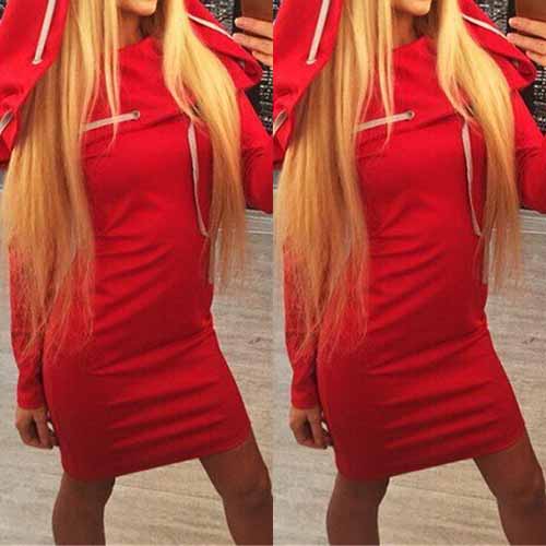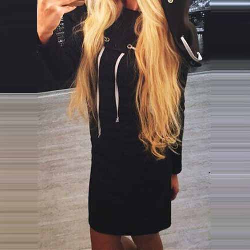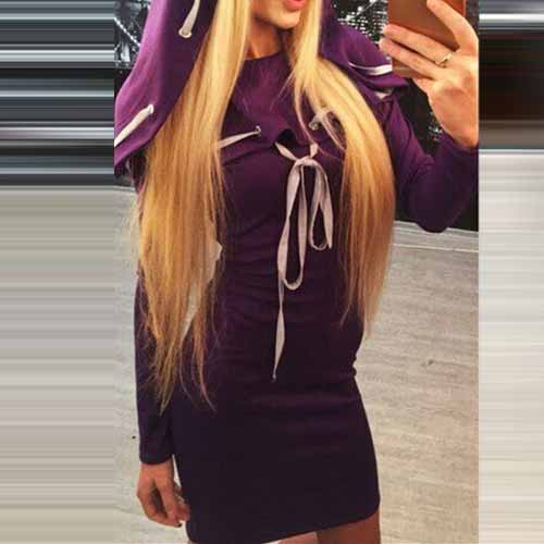 classic and stylish. And its unique neckline and hoodie design is the design highlight of this dress,which