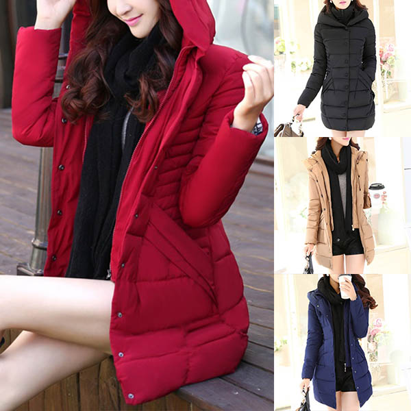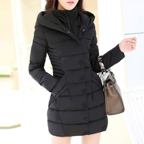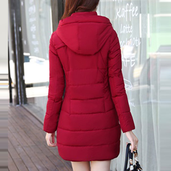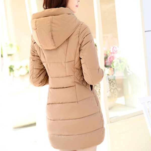 Fashion Solid Color Long Sleeve Hooded Slim Fit Padded Coat