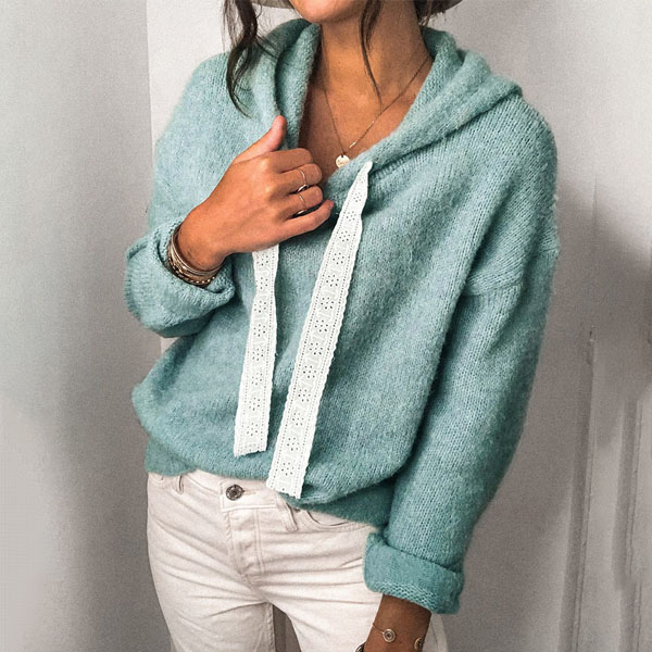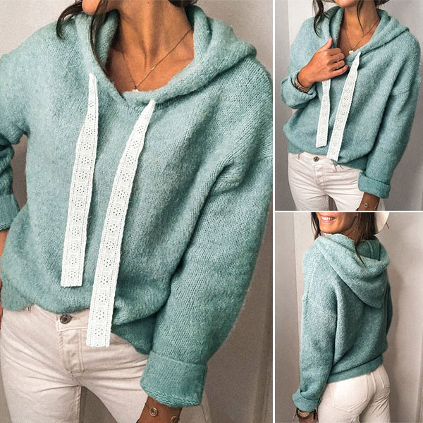 Make your autumn wardrobe more complete by adding this top. Solid color style,the lace drawstring design will add some extra charm. Finished with long sleeve and hooded silhouette,this top can keep you warm and comfy while it maintains a casual and relaxed autumn style.