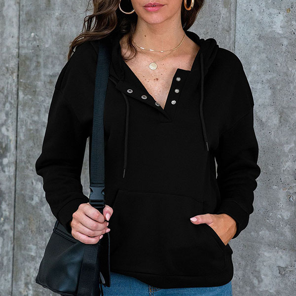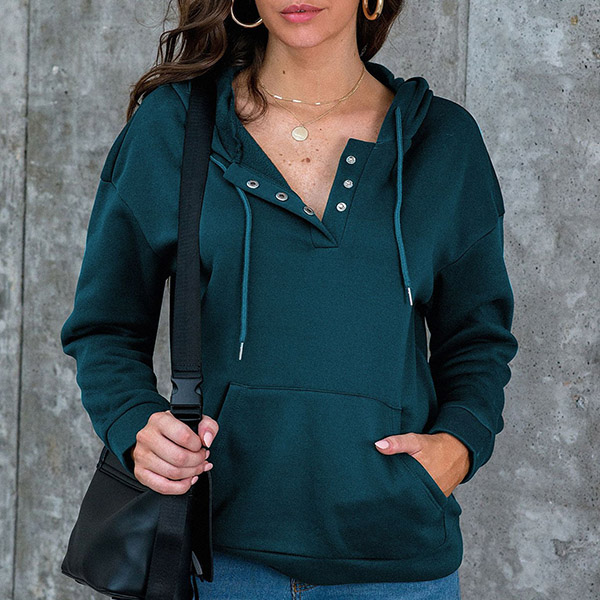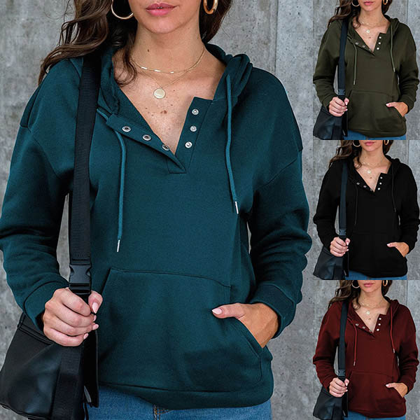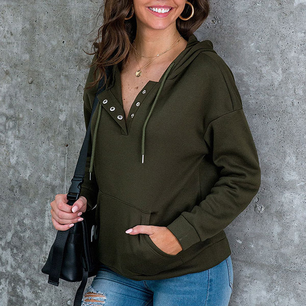 Fashion Solid Color Long Sleeve Hooded Sweatshirt