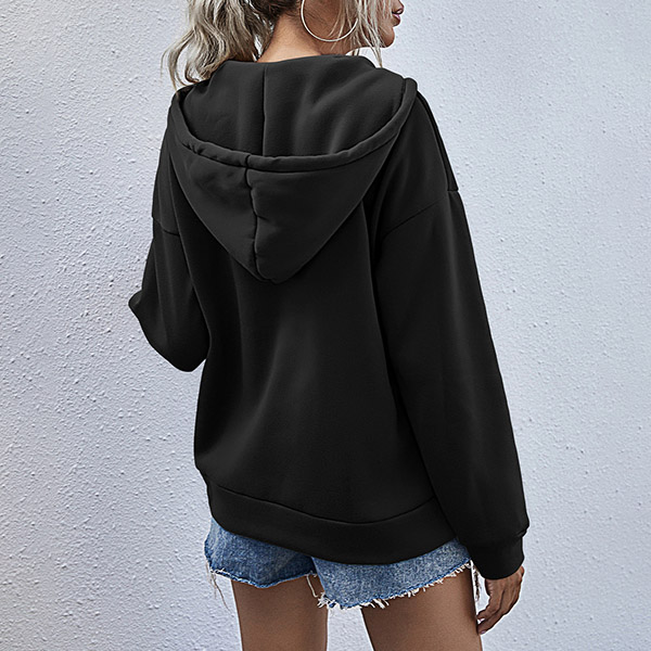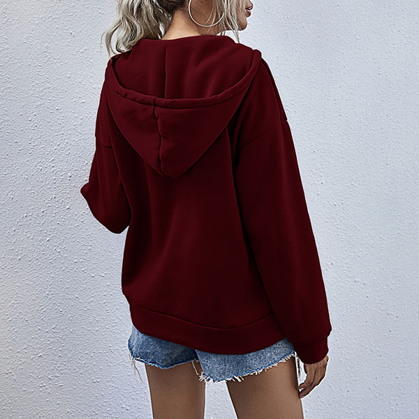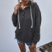 Fashion Solid Color Long Sleeve Hooded Sweatshirt