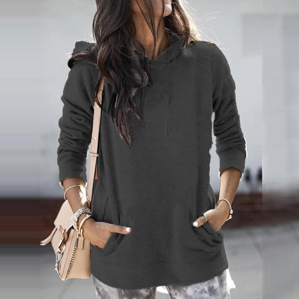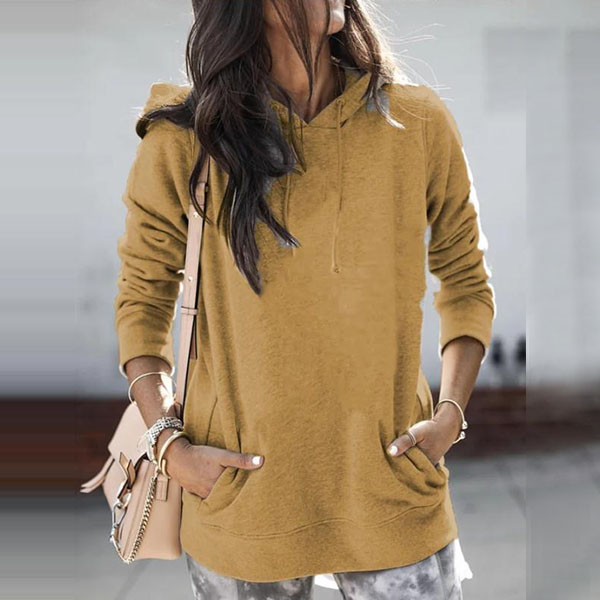 Fashion Solid Color Long Sleeve Hooded Sweatshirt