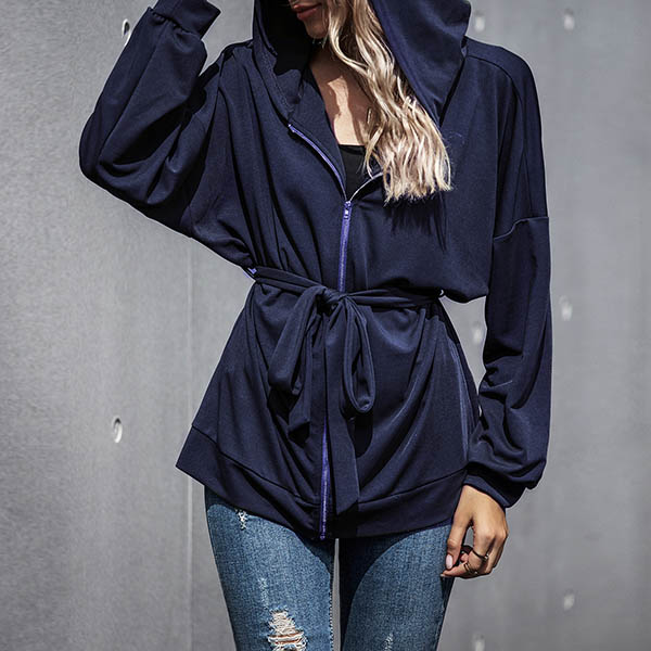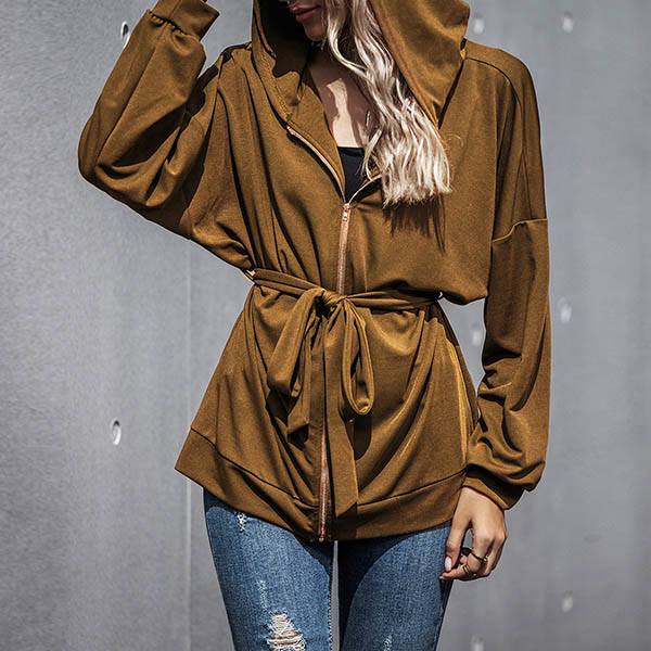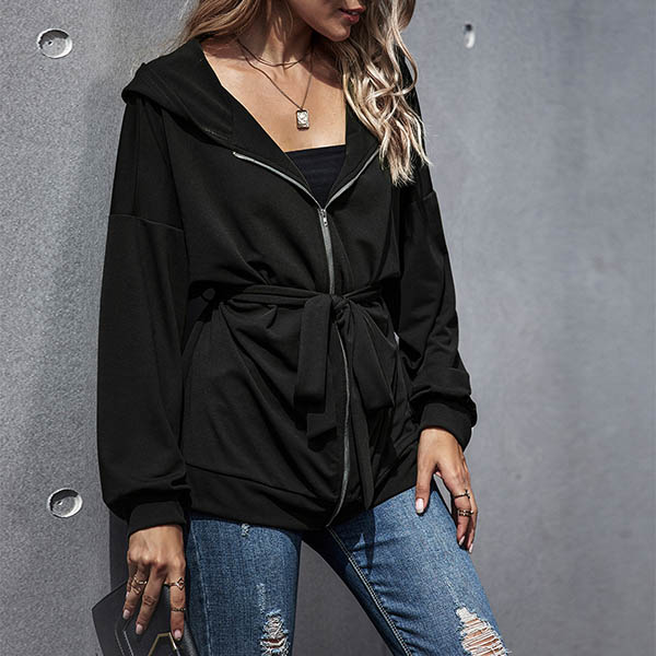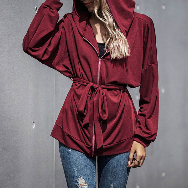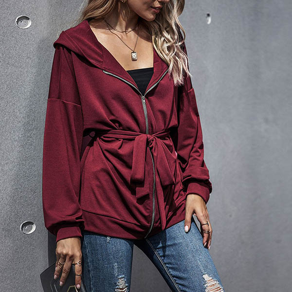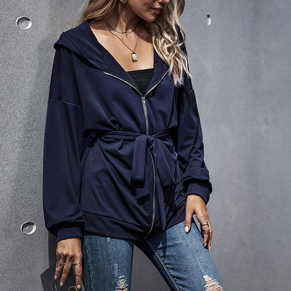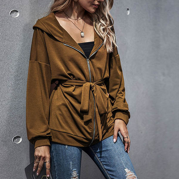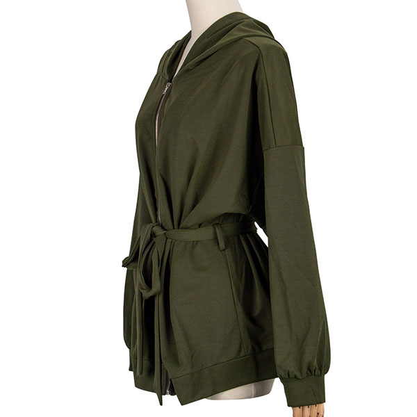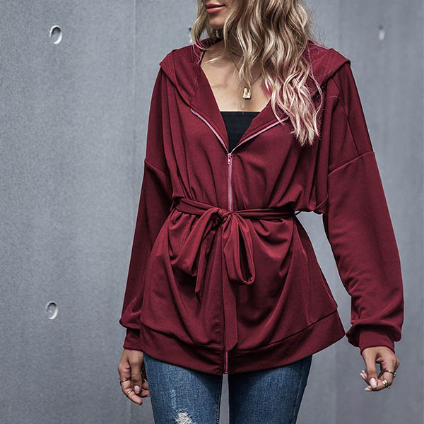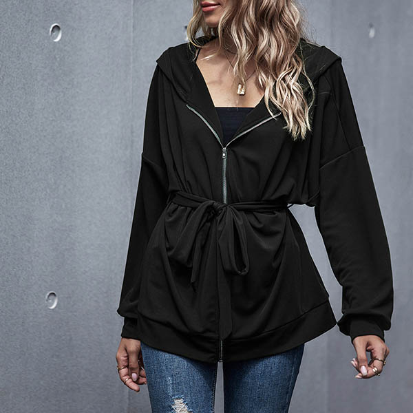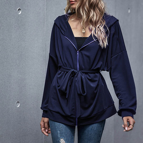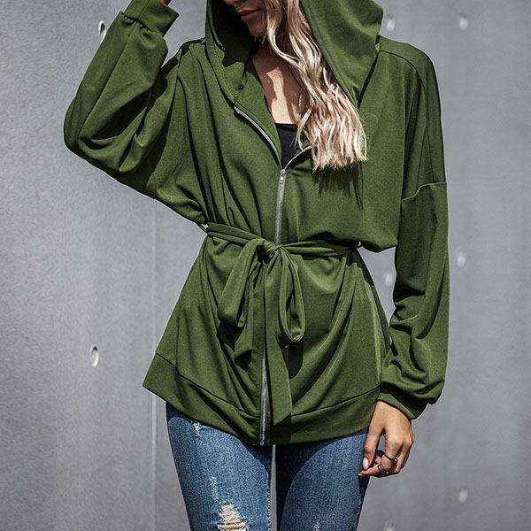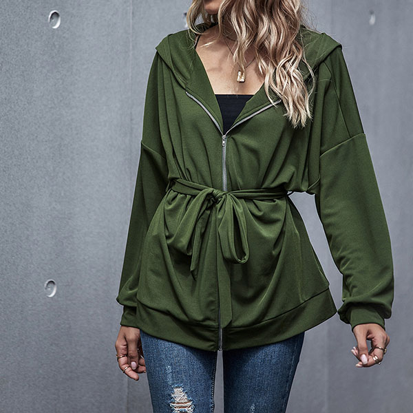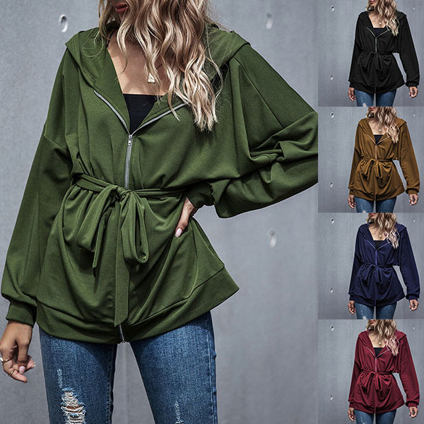 When the days get cold,this sweatshirt coat is worth to have a place in your wardrobe. Solid color style,finished with long sleeve and hooded silhouette,this piece can ensure you a warm and comfortable day. The waist strap design can showcase your slender figure.