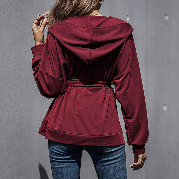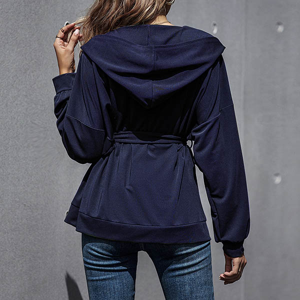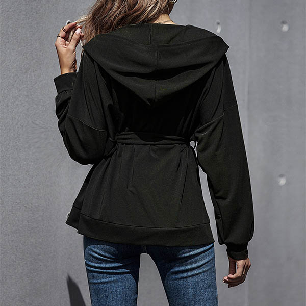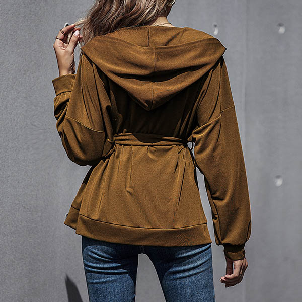 Fashion Solid Color Long Sleeve Hooded Sweatshirt Coat