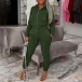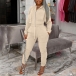 Fashion Solid Color Long Sleeve Hooded Sweatshirt Coat + Pants Two-piece Set