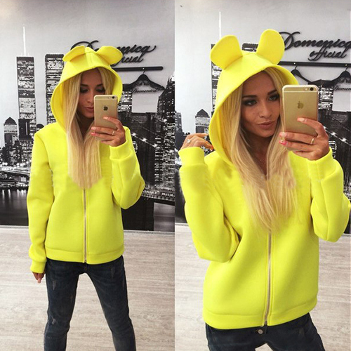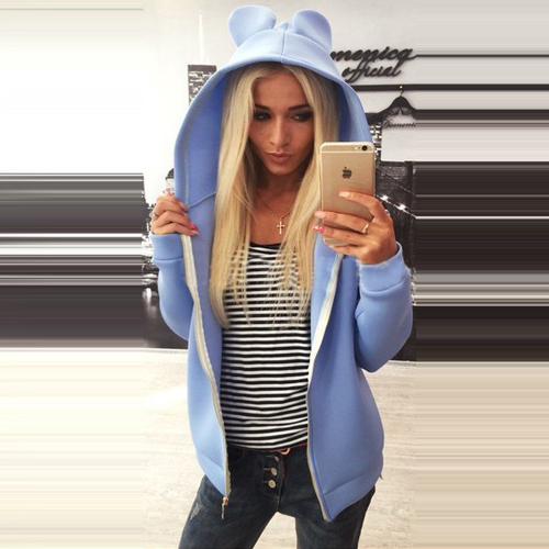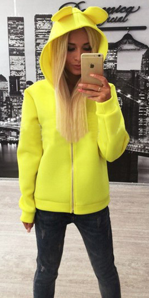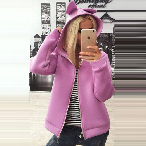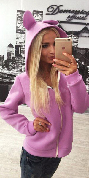 and hooded design. Front zipper closure makes it easy to wear off. Simple but casual