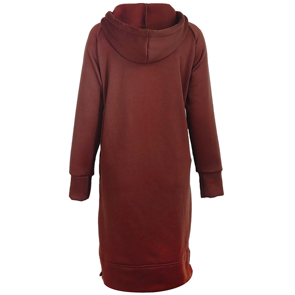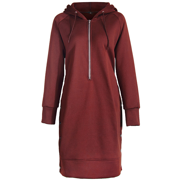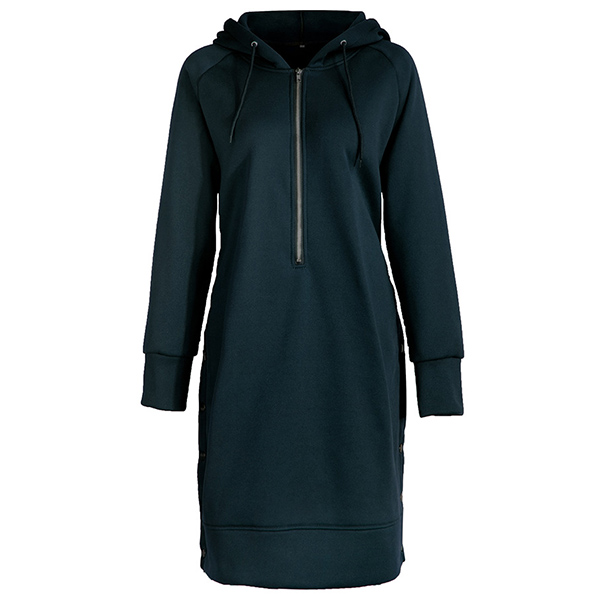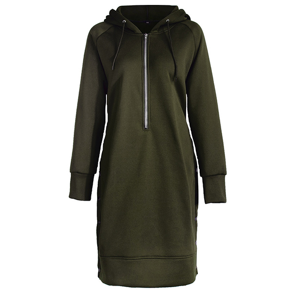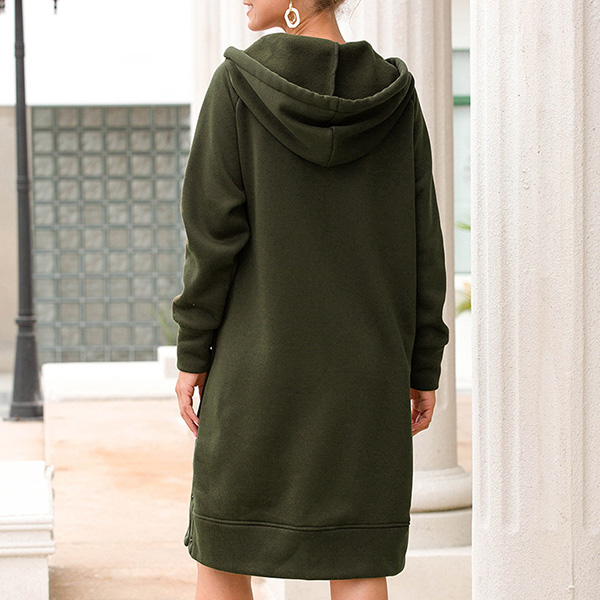Fashion Solid Color Long Sleeve Hooded Sweatshirt Dress