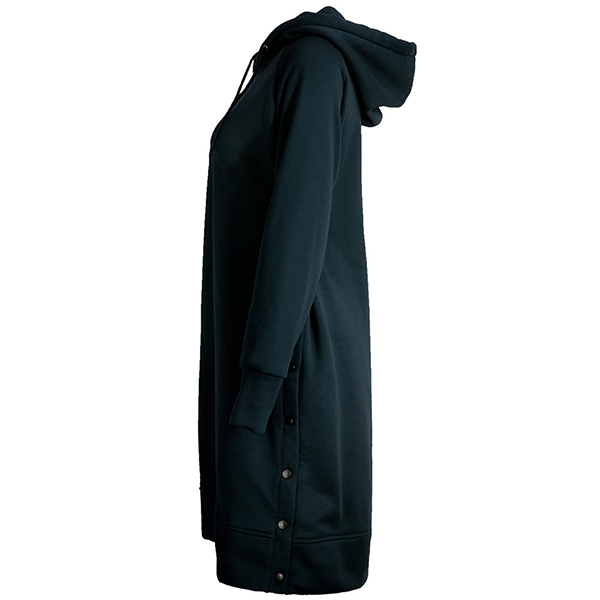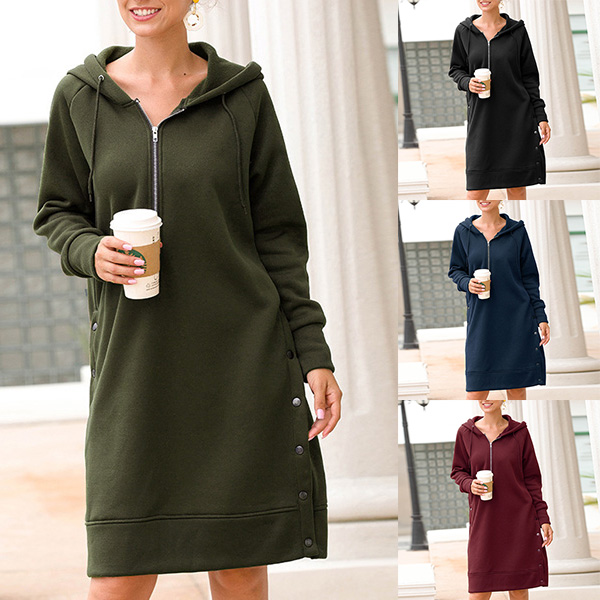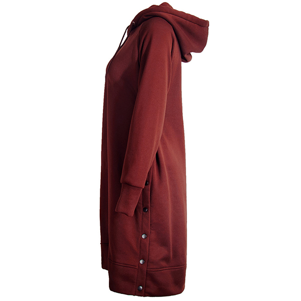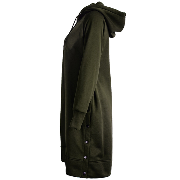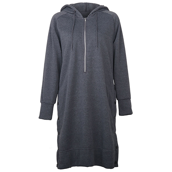 As for a casual,relaxed yet stylish autumn look,this sweatshirt can be your wise choice. Solid color style,finished with long sleeve and hooded silhouette,this piece can keep you warm and comfy. And the side-button design will further enhance its charm. Try to match with your casual flat shoes for a laid-back and fashionable style.