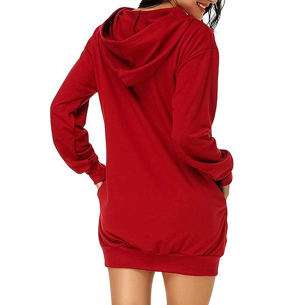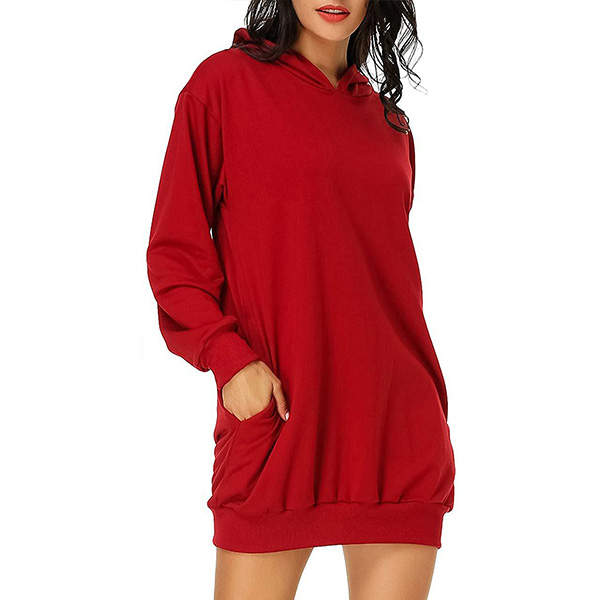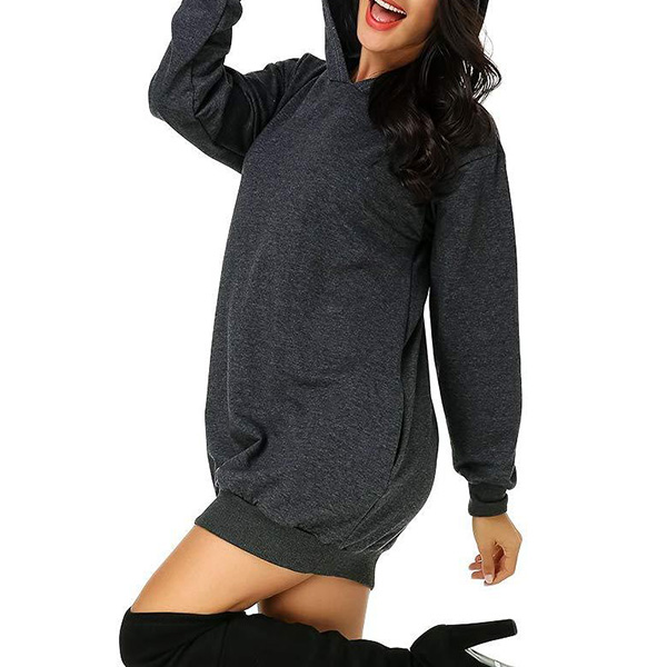 For a simple,casual,relaxed and stylish autumn style,you can make your eyes focused on this sweatshirt dress. Solid color style,outfitted with long sleeve and hooded silhouette,simple and classic in design style. When matching with your over-the-knee boots,you can look more charming!