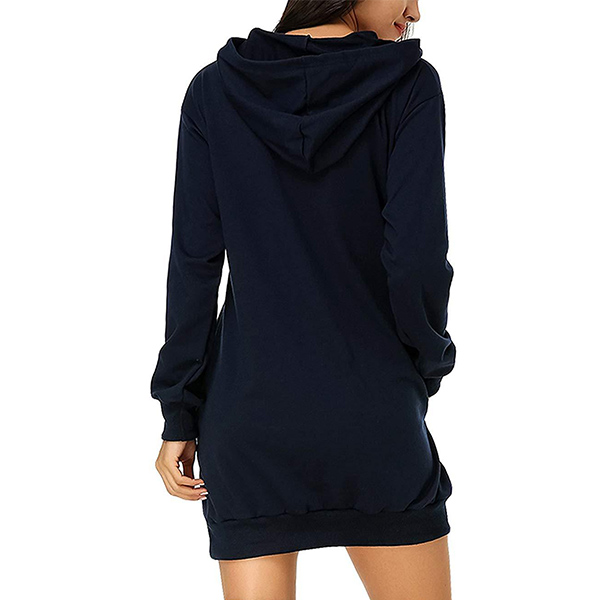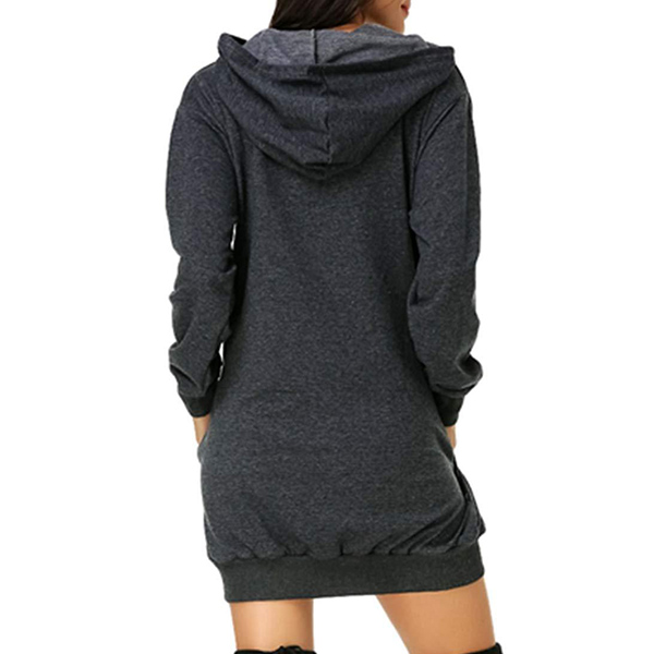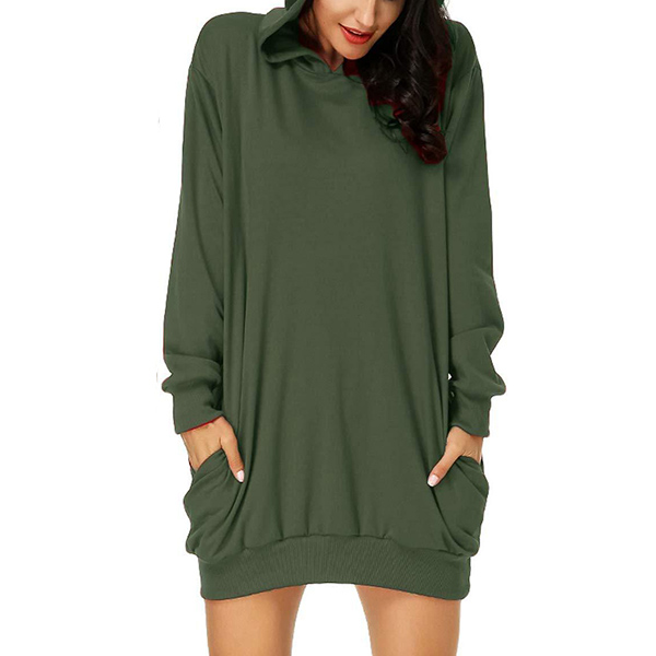 Fashion Solid Color Long Sleeve Hooded Sweatshirt Dress